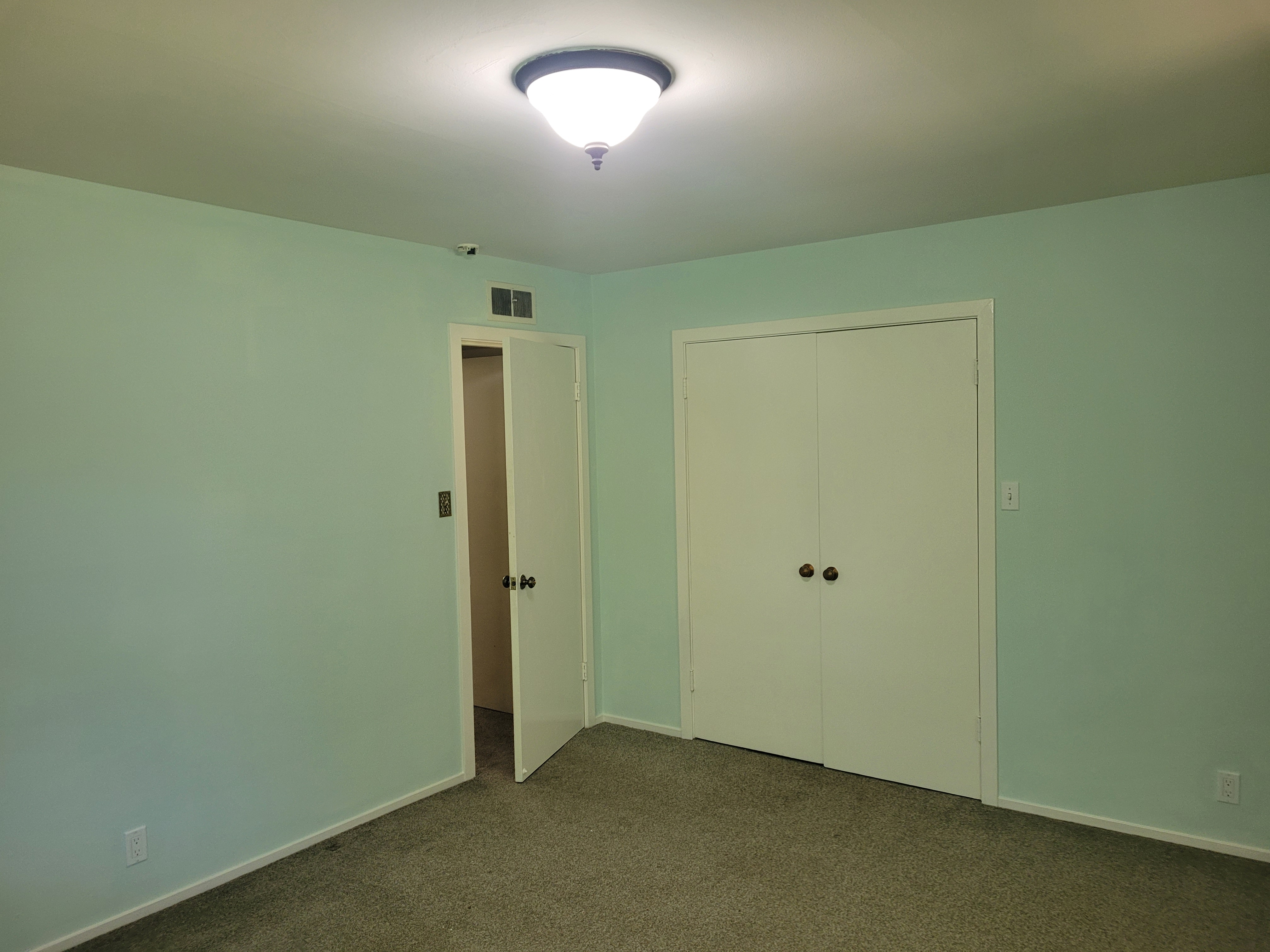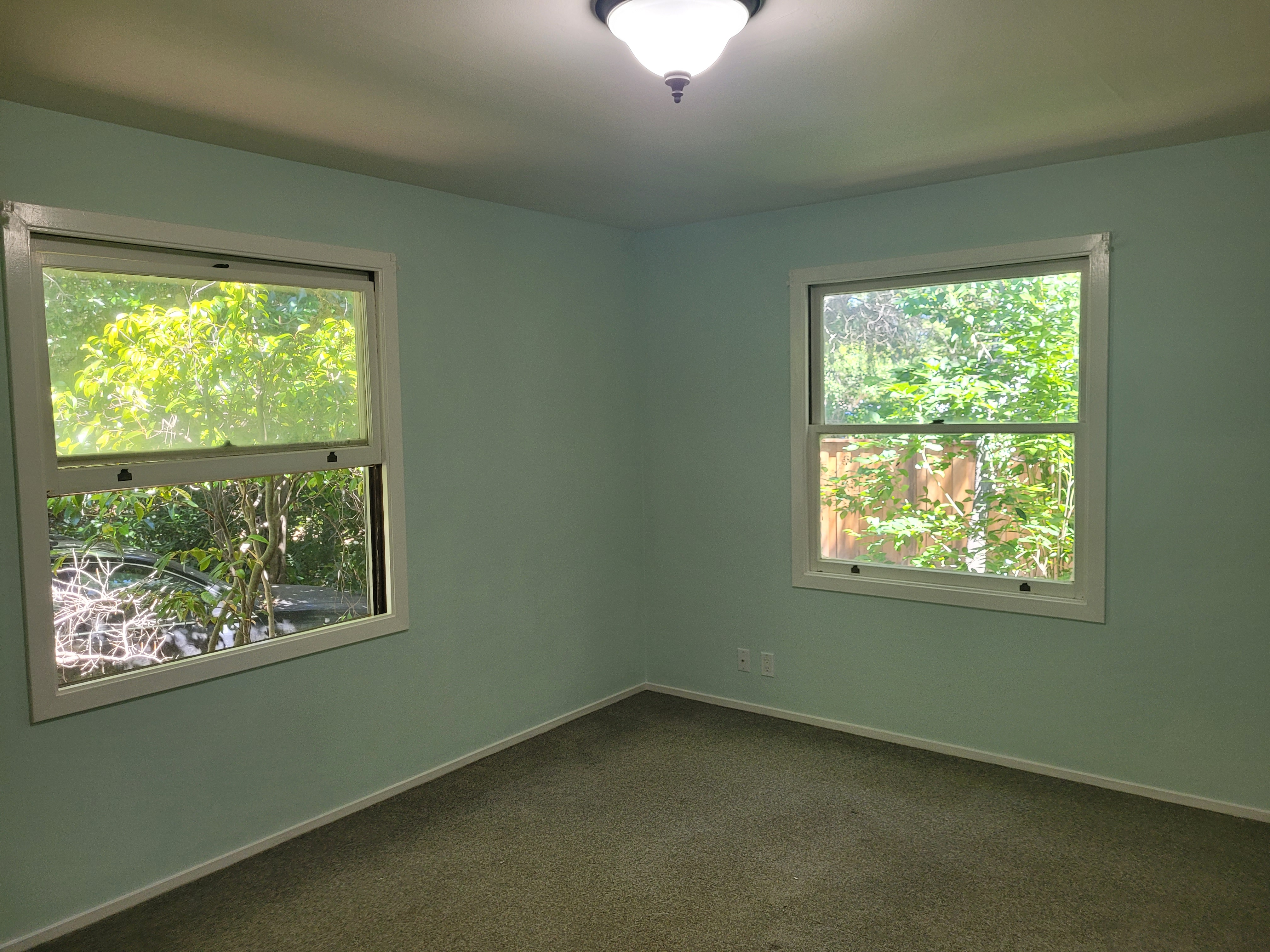 We painted our bedroom, which took about twice as long as expected because neither of us have been in charge of painting a space like that before. It is now a lovely sea foam green with white trim, which is far superior to the previous orange-tinted cream with yellow trim.