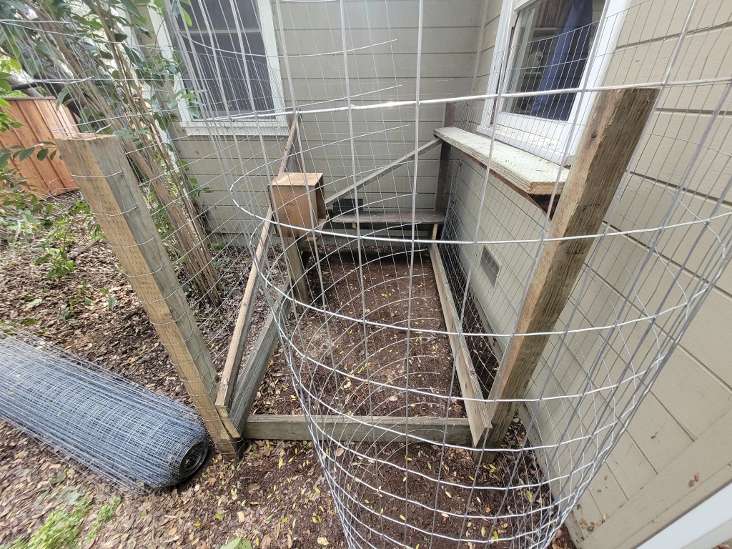 We still need to secure the roof, the front door, and the connection to our window, but those should only take a few more hours. In all, it will probably total about 2 dozen hours of work (those fence posts took a lot longer than they should have), but it does not seem too bad for having never done this before. And it is totally worth it because it will give my cat a safe place to call home too.