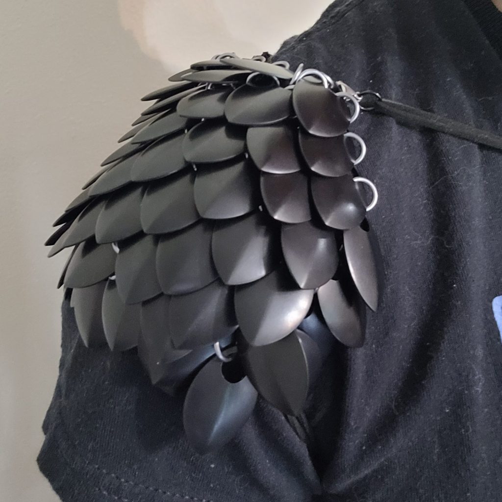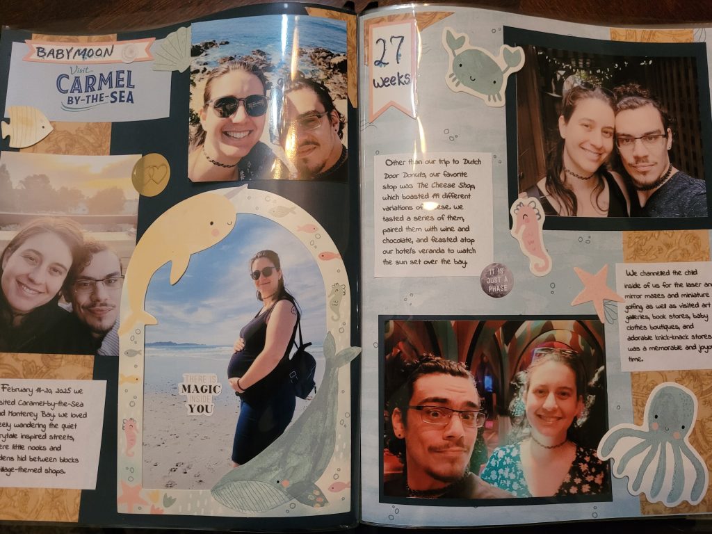 I have loved my time weaving chainmail and more recently the scalemail pauldrons (left). And creating permanent lasting memories by scrapbooking (right) adventures like our Babymoon.
