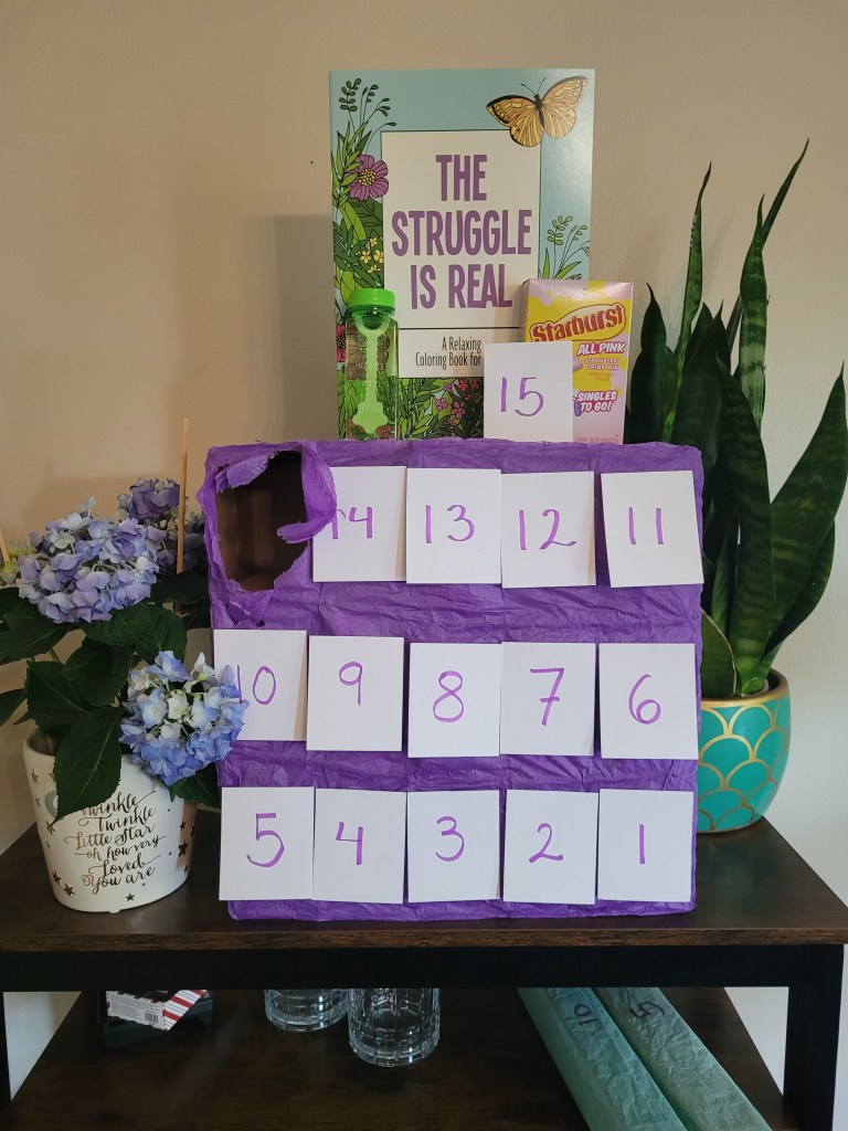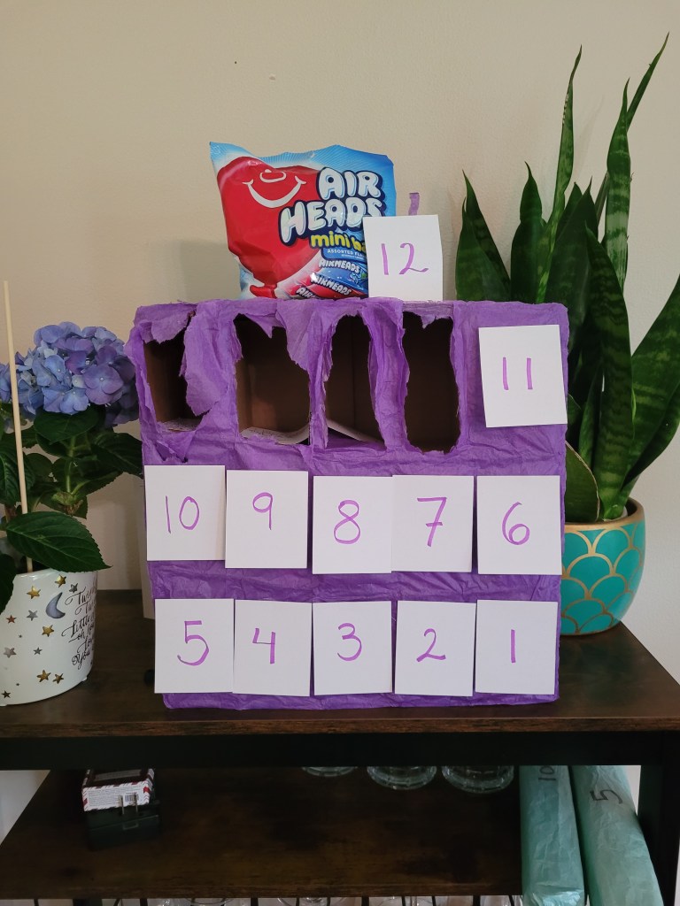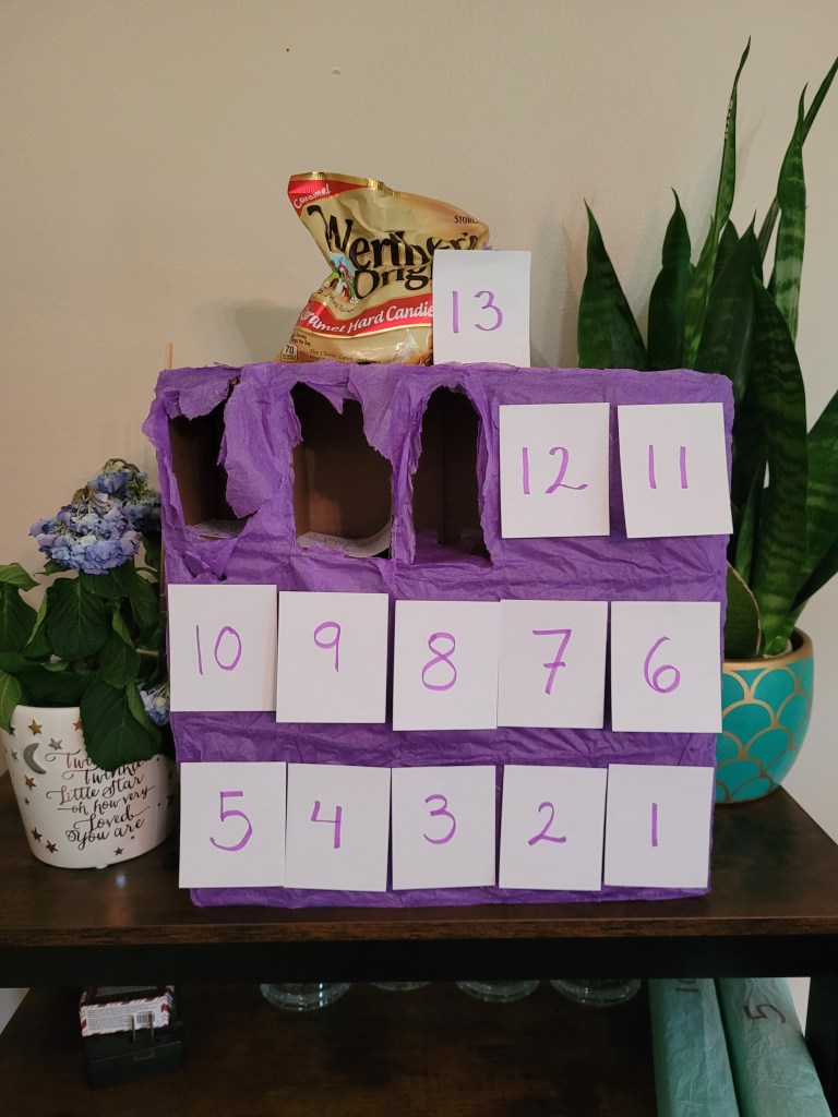 My fantastic and creative wife built this sugar-filled advent calendar with little goodies for each work day counting down to my paternity leave. The last day also happens to be our due date, so it is truly a countdown for both of us.