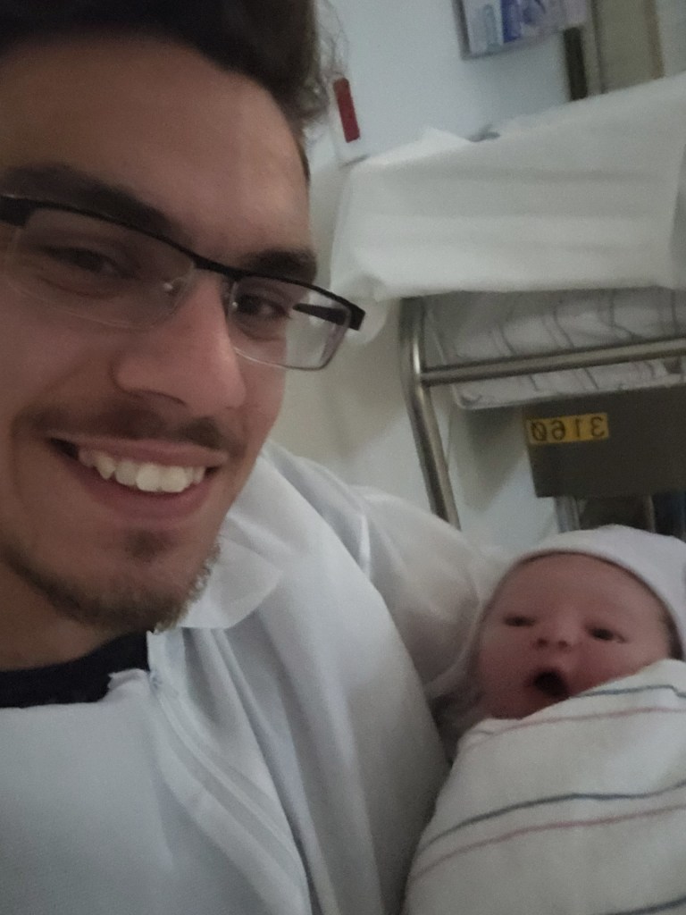 My wife’s water broke the night of the 27th as we were going to bed, but contractions did not set in regularly until the following morning. By 8am, they were less than 5 minutes apart.