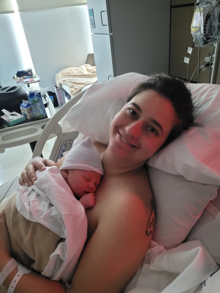 After 6 more hours of pushing, we were completely exhausted. Neither of us had slept or eaten much. So despite our best intentions and detailed birth plan, we agreed to a c-section.